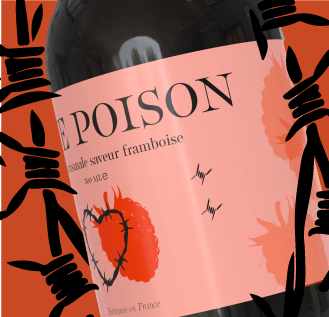 Cute Poison est une marque fictive de bière artisanale avec une identité centrée sur sa saveur principale : la framboise. L’univers de la marque s’inspire d’une bouteille de sirop et joue sur l’aspect de « poison séduisant ». Le design de l’étiquette allie des illustrations de framboises et une palette de couleurs rosées, avec des éléments graphiques comme des barbelés noirs pour exprimer l’équilibre entre les codes de la douceur et du poison. Chaque élément a été conçu pour créer un contraste fort qui attire immédiatement le regard et invite à la découverte. Inspirée par l’idée d’une boisson à la fois séduisante et légèrement « venimeuse », cette identité crée un contraste visuel accrocheur.