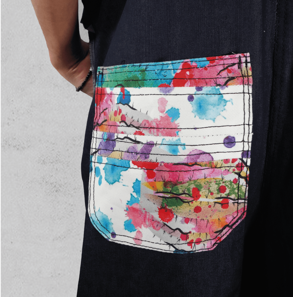 Maechouw, designer textile et créatrice indépendante développe sa marque de vêtements, bijoux et accessoires dans un univers de motifs artistiques et colorés. Denim & Resin lover, Maechouw met un point d’honneur à travailler des matériaux de qualité. Elle imprime ses propres motifs sur des pièces en jean soigneusement choisies, recycle ses chutes de tissus, et transforme des matériaux pour façonner ses accessoires et bijoux, faisant de l’upcycling un pilier de son processus créatif.