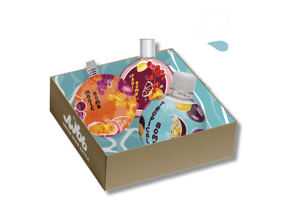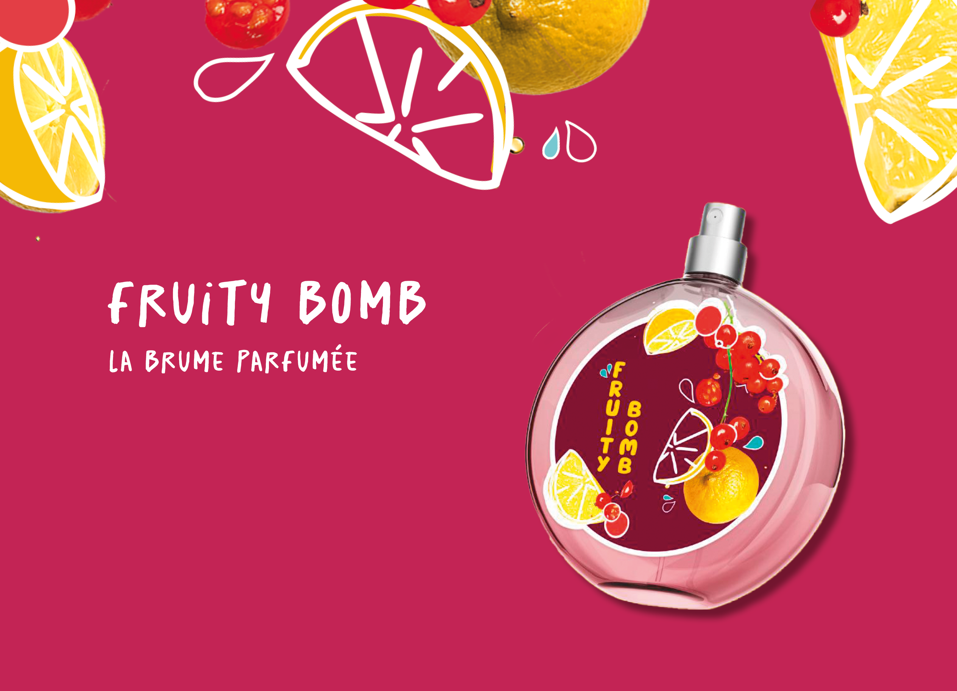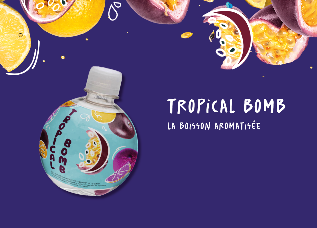 Éléments visuels : Création d’éléments graphiques (formes organiques, éclaboussures d’eau, motifs fruités) à intégrer dans les supports visuels, packaging, et décor du pop-up.